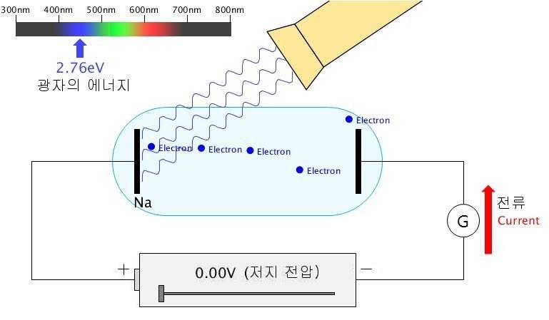 보통 광전효과 실험으로 나트륨(Na)과 같은 알칼리 금속들이 자주 사용되는데, 이것은 알칼리 금속들의 일함수가 작기 때문에 낮은 주파수의 가시광선으로도 광전효과를 쉽게 일으킬 수 있기 때문입니다.