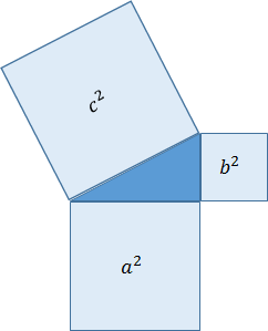 The equation a²+b²=c² represents three squares created using each side. The sum of the areas of the two smaller squares equals the larger square.