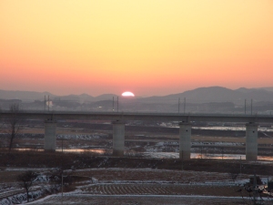 夕方の太陽の光が地表面を斜めに映し出します。波長が短い青色の光は、大気を長く通過しながら散乱され四方八方に抜けてしまいます。最終的には、赤のような比較的波長の長い光が残って夕焼けに見えます。